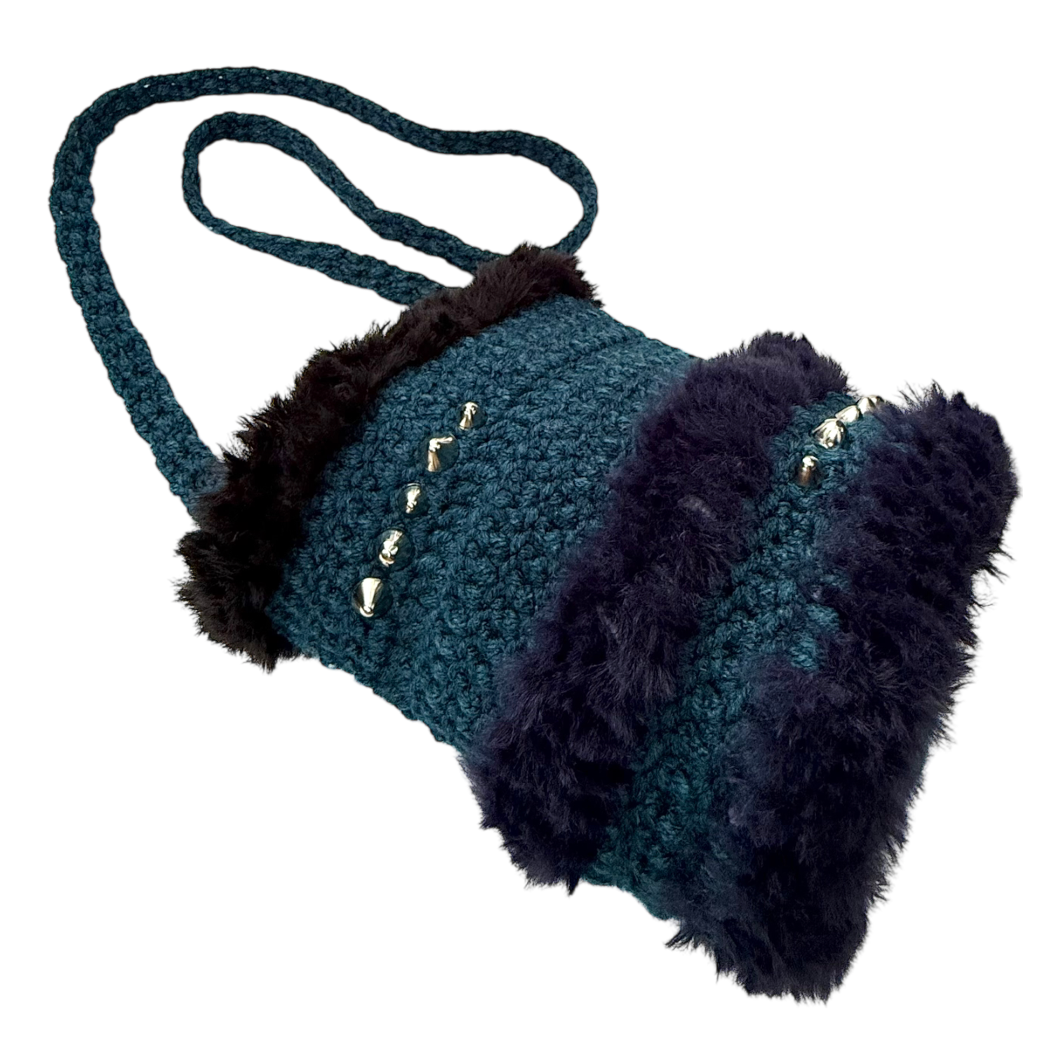 ◎ candy trip ◎ 自由編みのショルダーBag / navy & soft studs