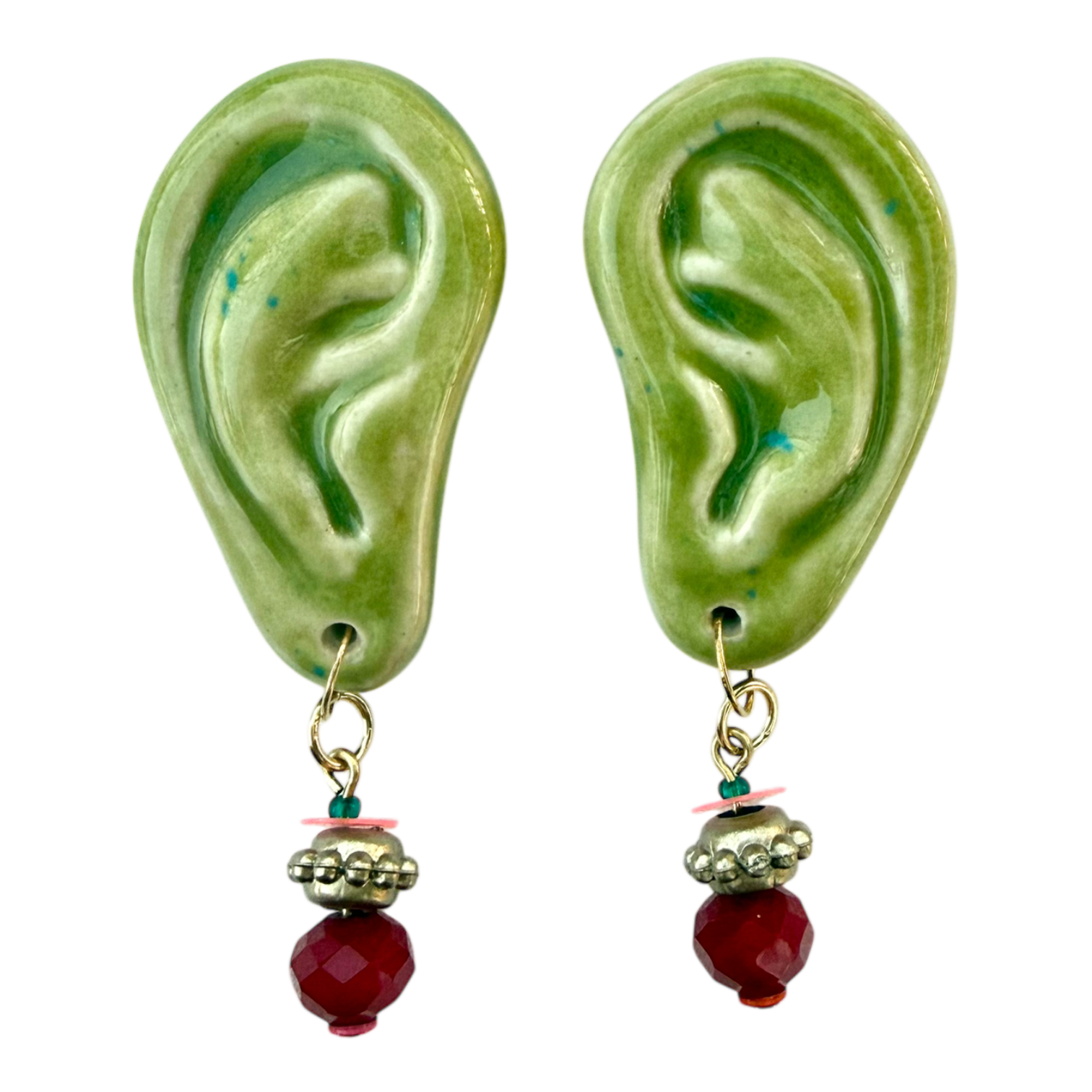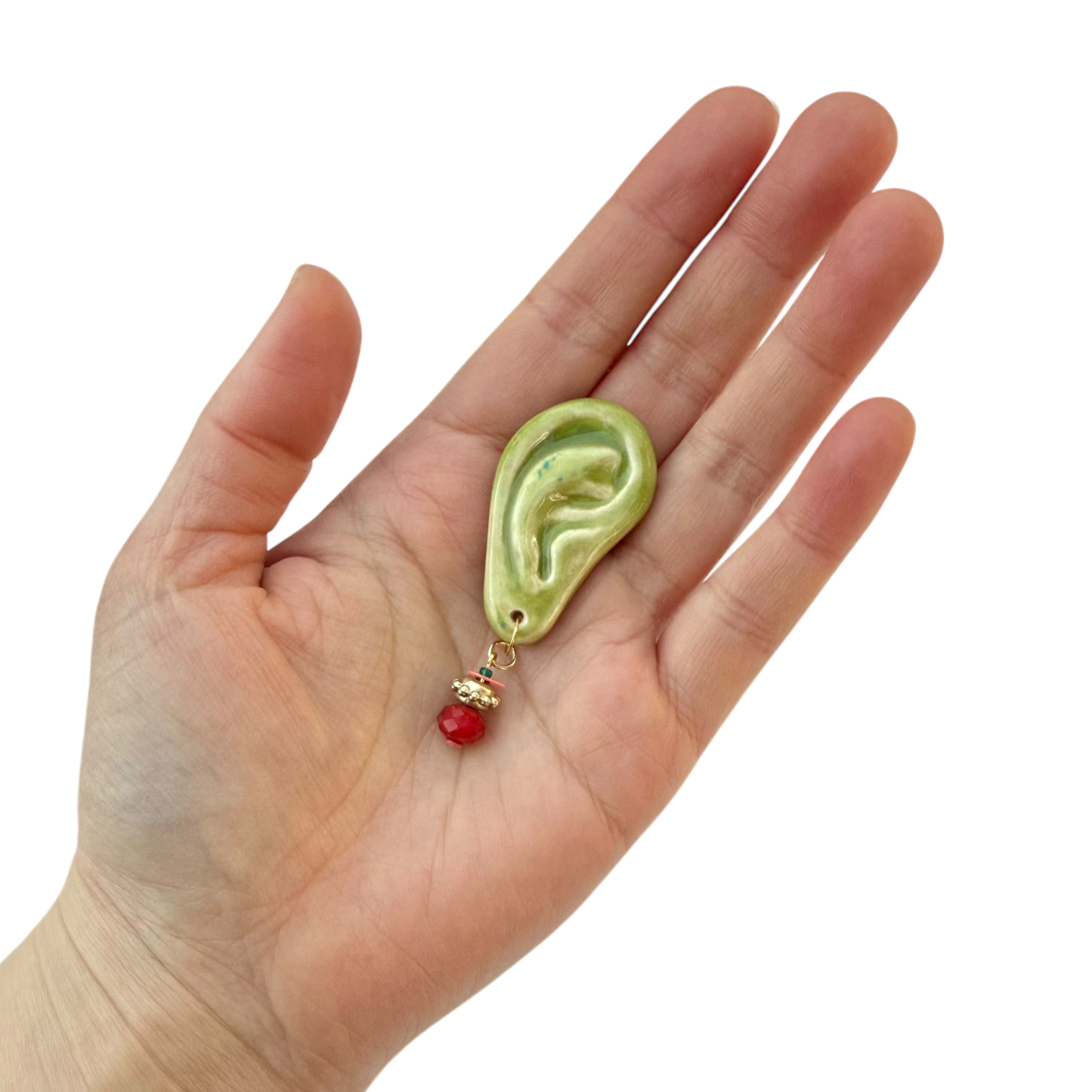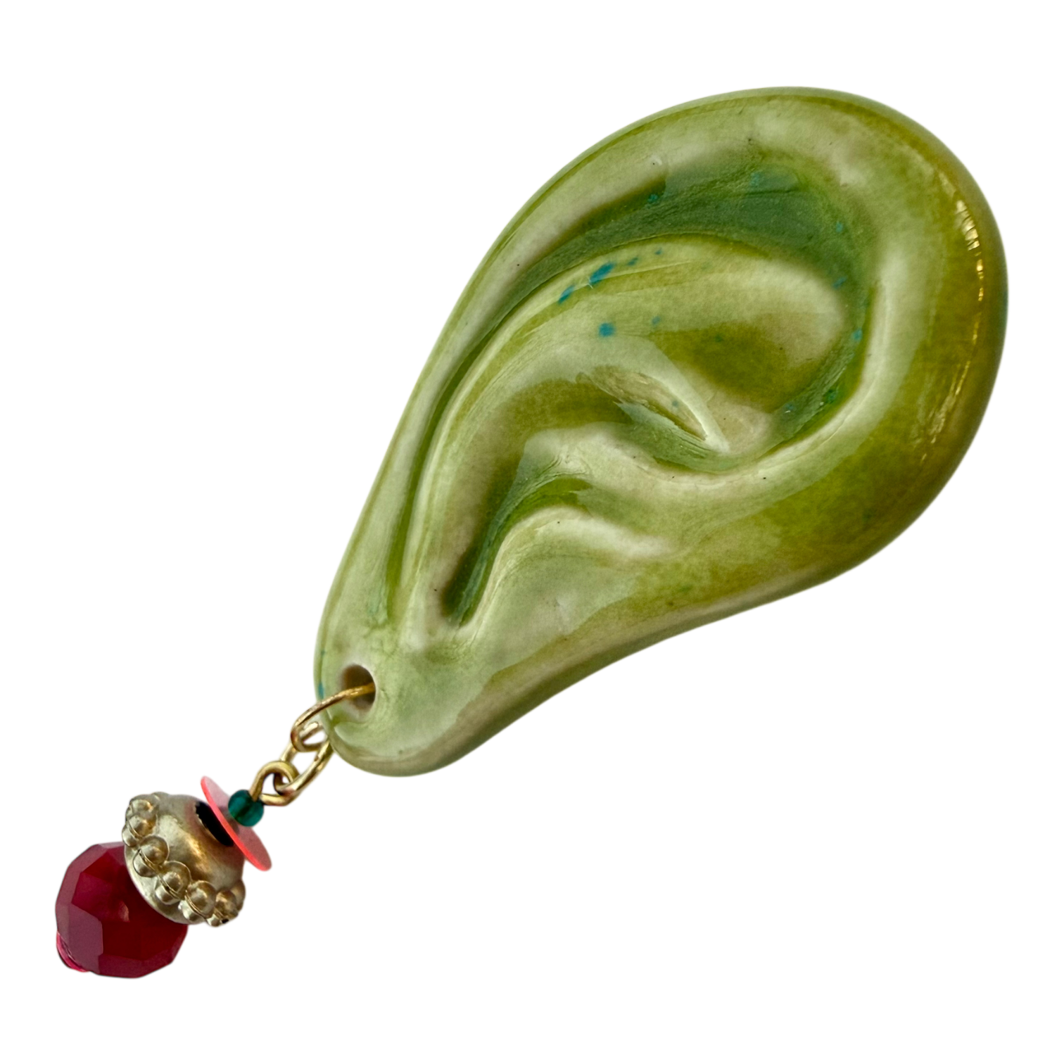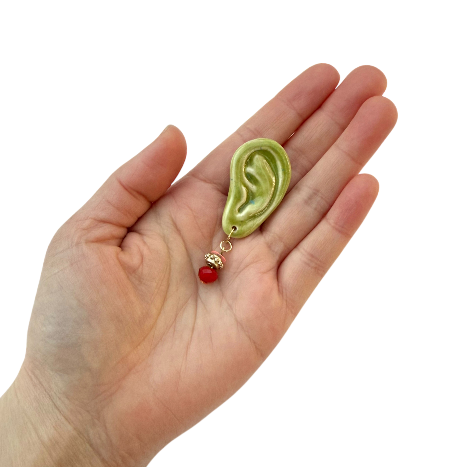 ◆Henripaul⚡︎GyanGyan◆緑の耳ブローチ /金彩なし〜ピアス装飾付き〜