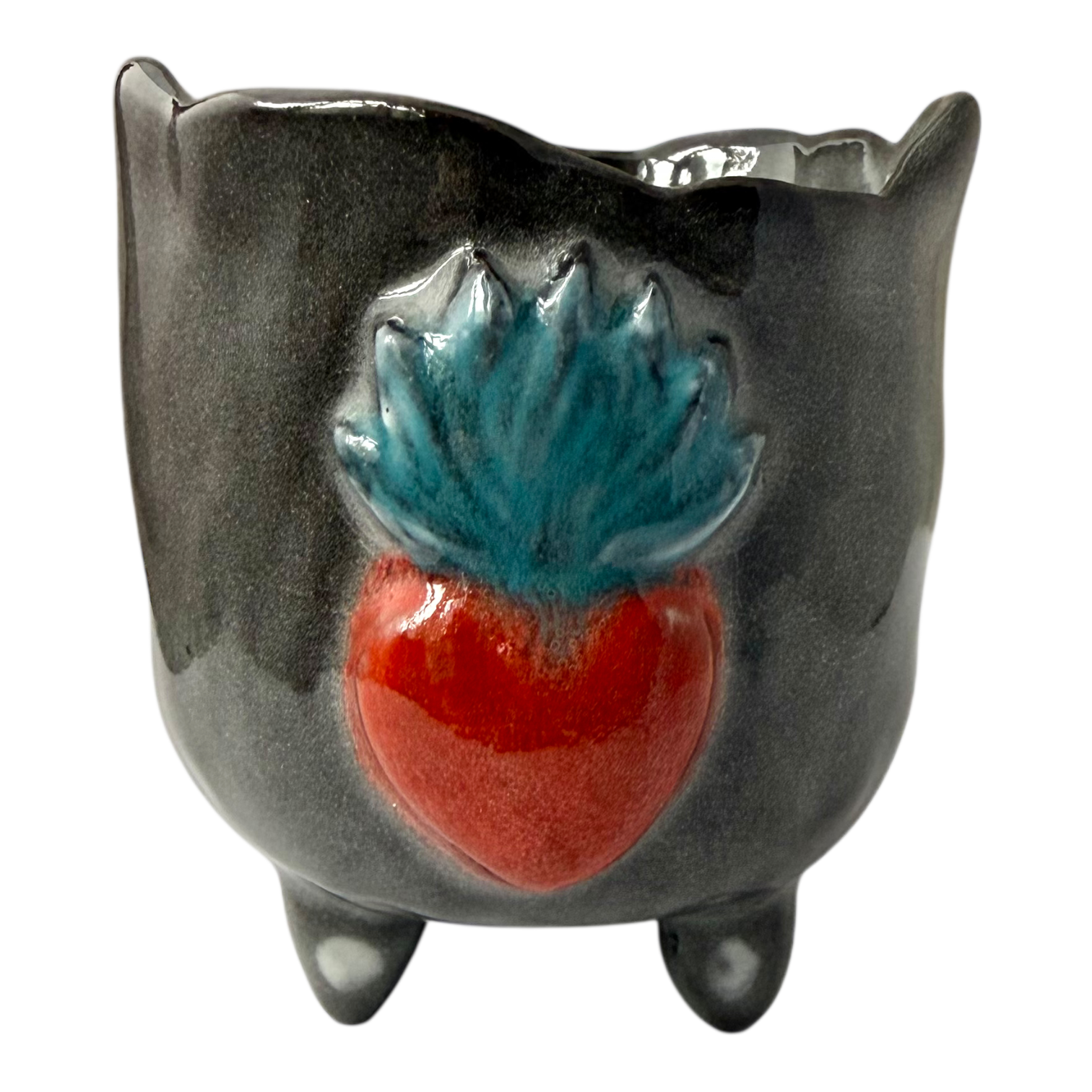 こちらの作品は、メキシコにあるハートから炎が出ているモチーフ「コラソン」のぷっくり装飾をつけたデザインです。