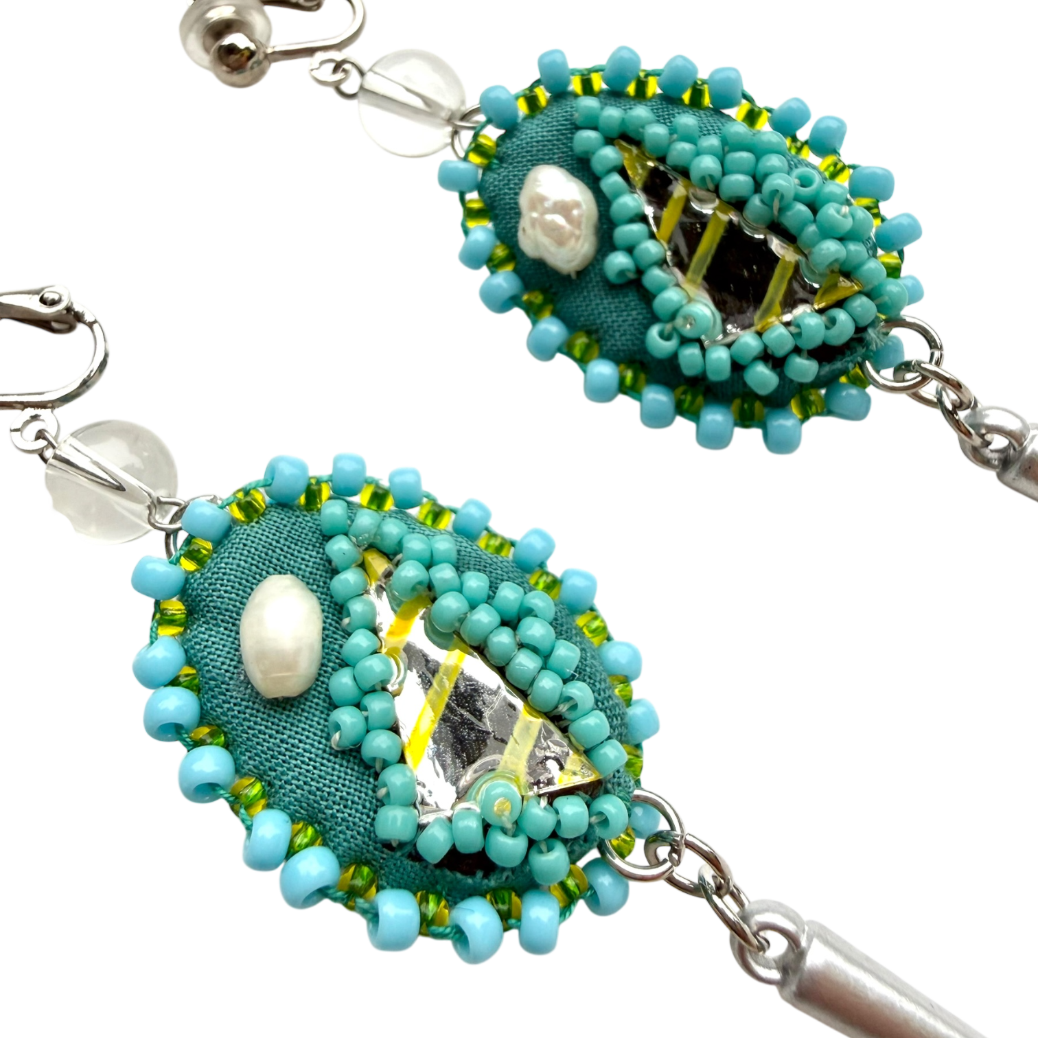素材:綿、ガラスビーズ、プラスチックビーズ、鏡、樹脂、アクリル絵具、綿糸、サージカルステンレス