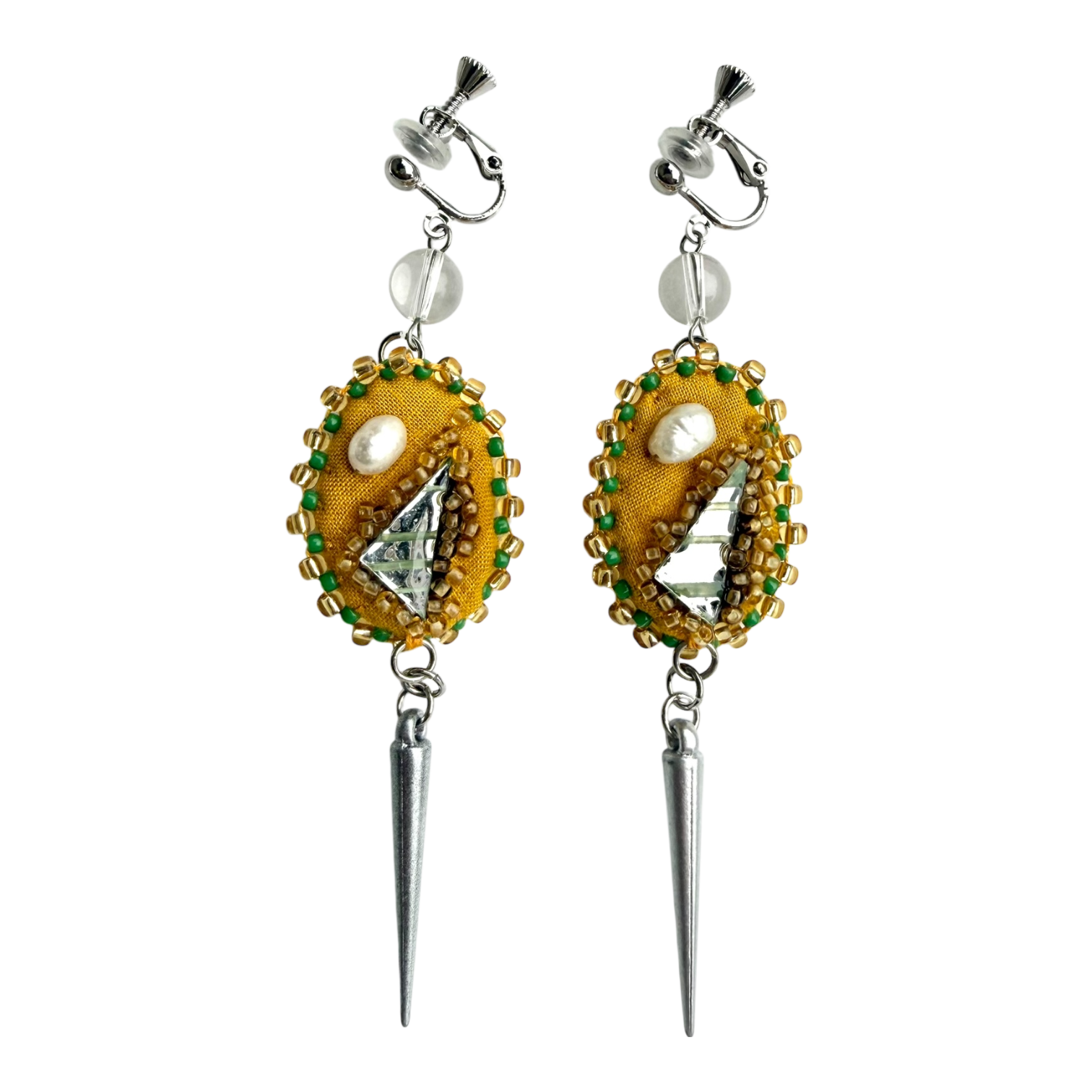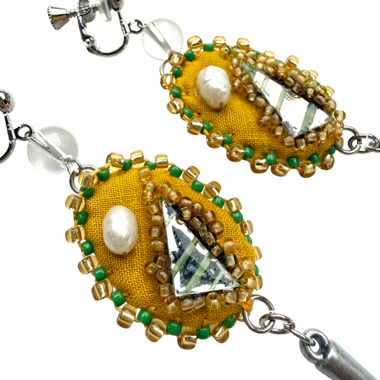 素材:綿、ガラスビーズ、プラスチックビーズ、鏡、樹脂、アクリル絵具、綿糸、サージカルステンレス